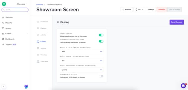 - Auditability. Shared screens should be “borrowable” for a defined window of time, then automatically return to their scheduled content. You should always be able to access clear records of who cast what content, and to which screen.