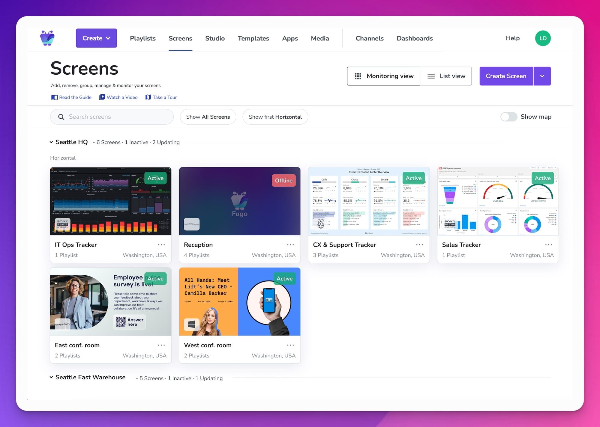 In contrast, most consumer devices (including the Fire TV Stick) require a separate setup per device. They also don’t offer native screen management, since you have to couple your screens with another CMS.