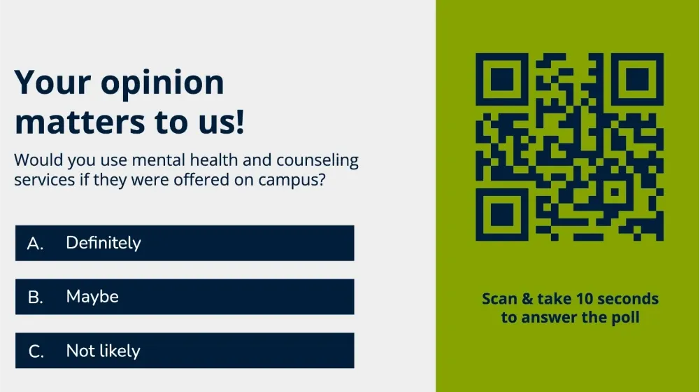 You might also pair QR codes with low-pressure messaging like “book a free session” or “chat with a confidential therapist in seconds” to normalize taking action and reduce any hesitation.