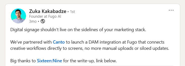 Zuka is the Founder of Fugo AI and has been a serial entrepreneur for 11+ years. He brings a fresh, startup-minded lens to the world of digital signage and connected retail. His content focuses on how smaller teams can punch above their weight with smart tech and agile operations — plus a behind-the-scenes peek at what he's doing at Fugo.ai.