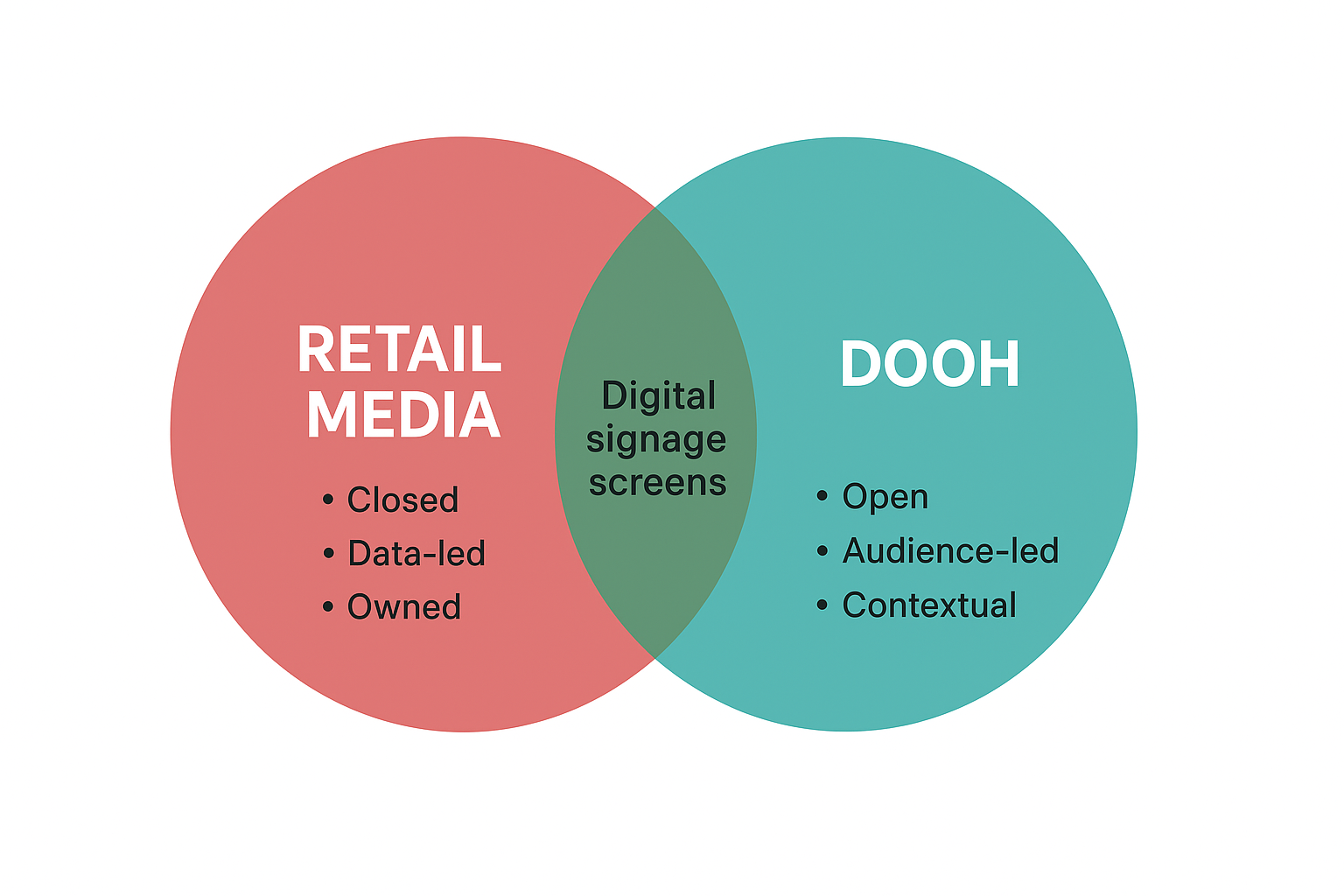 Two industries, one audience, and a rapidly blurring line between what counts as “retail media” and what counts as “digital out-of-home.”
